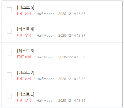 [테스트 1~5] 모든 글에 같은 방법으로 발행일을 수정하니 오름차순으로 예쁘게 적용되었다. 하지만 이와 같은 방식은 과거에 있던 글이 현재로 업데이트 되는 방식이기 때문에
