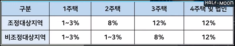 아파트 등 주택은 조정/비조정대상지역 및 주택수에 따라 취득세가 다릅니다. (아래 표)