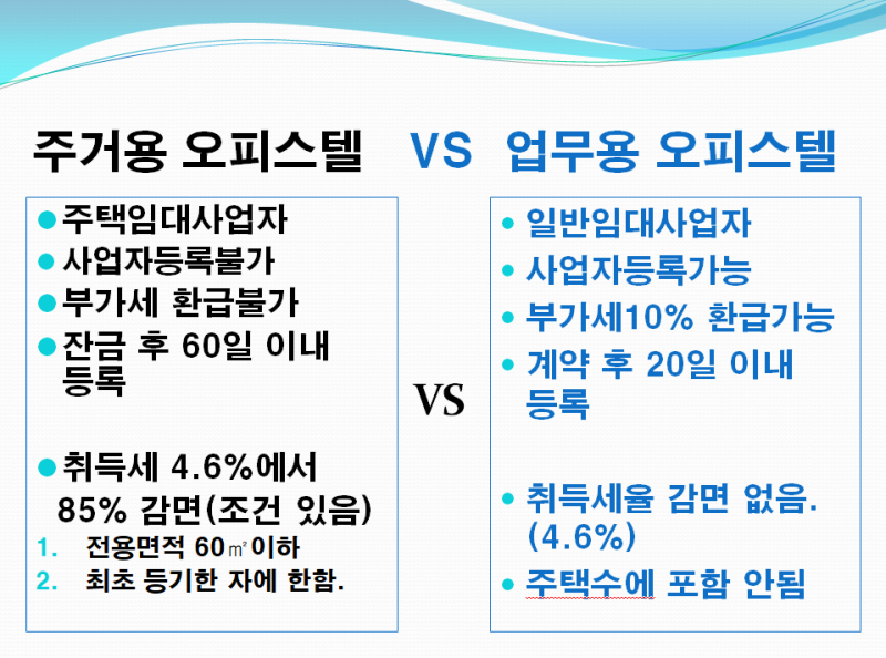 주거용 오피스텔과 업무용 오피스텔 세금,