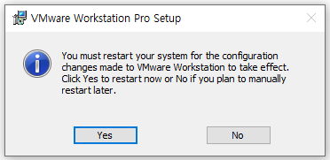 설치가 안료되었으면 재시작한다고 나오는데 Yes누르면 됩니다.