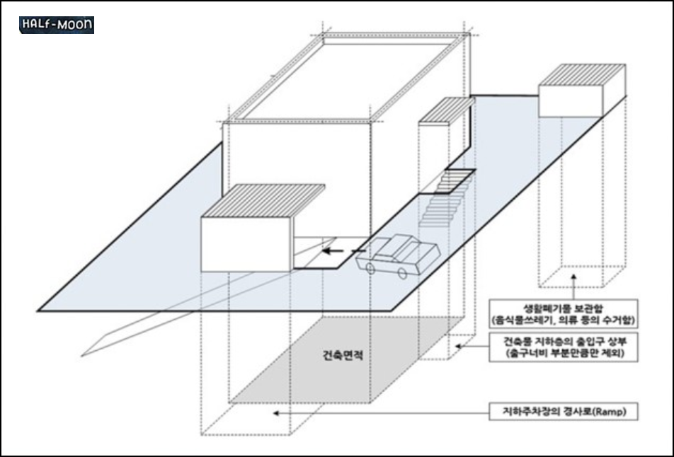위에서 설명했듯, 용적률 계산을 위한 연면적 산정시 아래 면적을 제외해야 합니다. (계산착오 주의!!)