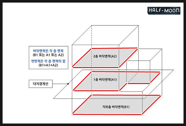 - 대지면적 계산법과 동일한 방법으로 산정합니다.