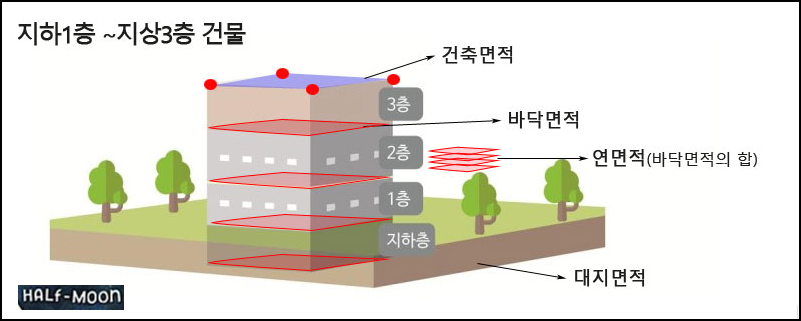 건축면적 / 대지면적 / 바닥면적 / 연면적 / 건폐율 / 용적률 정의