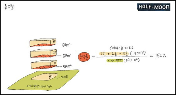 용적률이란 대지면적에 대한 연면적의 비율을 말합니다.