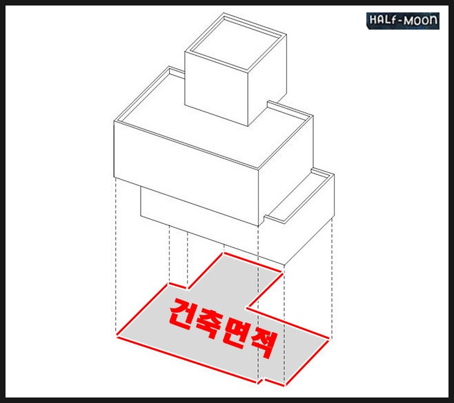 건축물을 하늘에서 봤을때 대지에 수평투영되는 면적을 의미합니다.