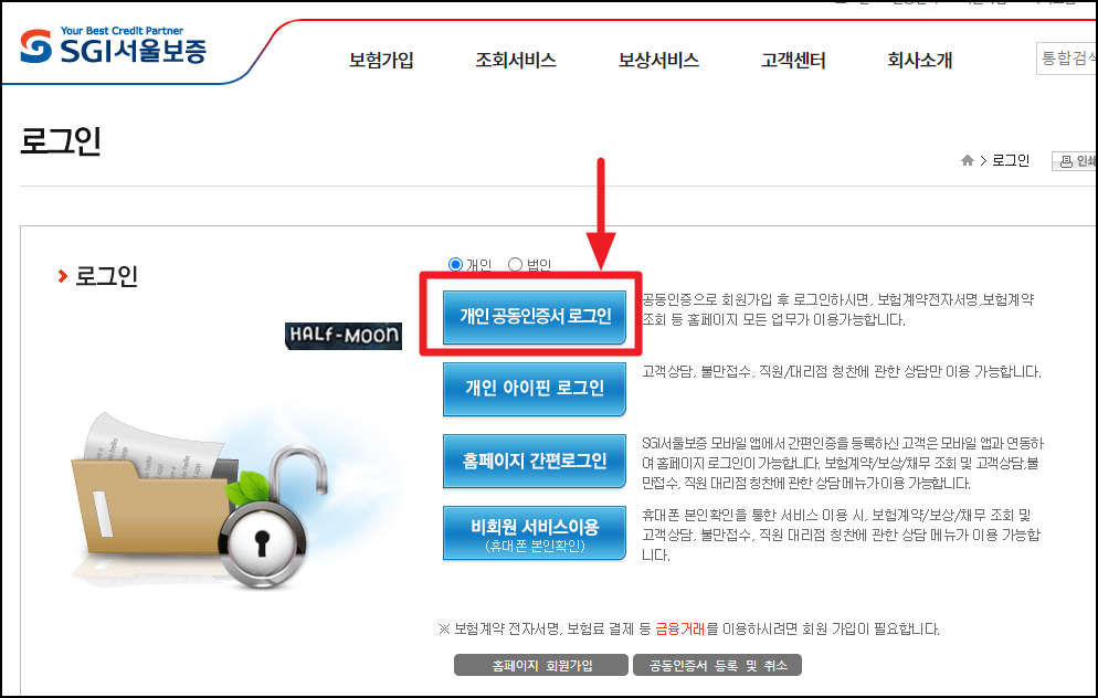 2) 개인 공동인증서 로그인 (구 공인인증서)