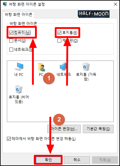 내컴퓨터, 휴지통 아이콘 만들기