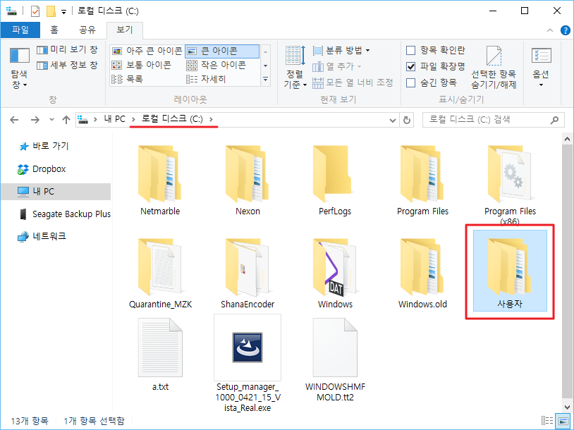 1) 위 경로를 참고해 C 드라이브 -> User 혹은 사용자 폴더를 더블클릭합니다.