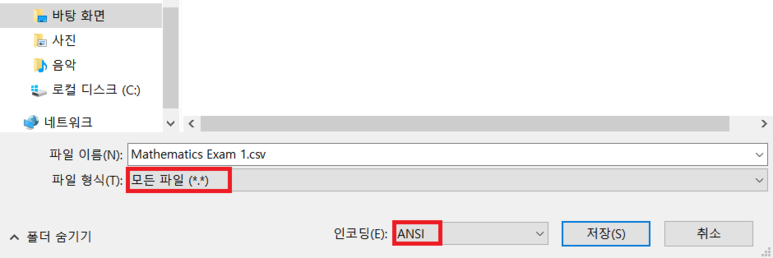 기본적으로 UTF-8 인코딩으로 설정이 되어 있었다면 ANSI 인코딩으로 설정을 바꾸어서 다시 저장하도록 합니다.