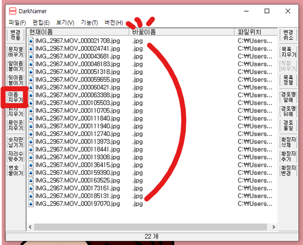 파일 이름을 한꺼번에 바꿔주는 프로그램