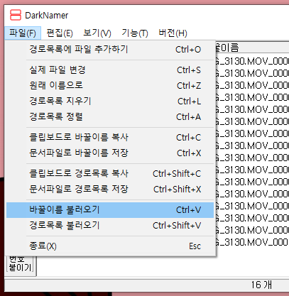 나는 엑셀로 입력 → 메모장에 복붙 후 저장 → 메뉴 중 [파일] - [바꿀 파일 이름 불러오기] 선택