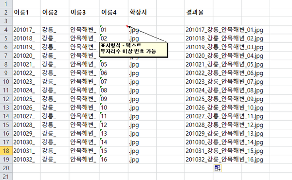 ※ 주의! 엑셀에 입력시 확장자 명까지 같이 입력해야 할 것!