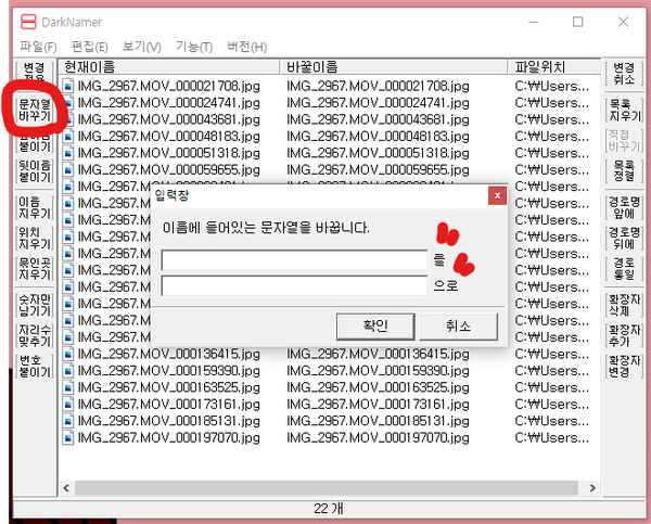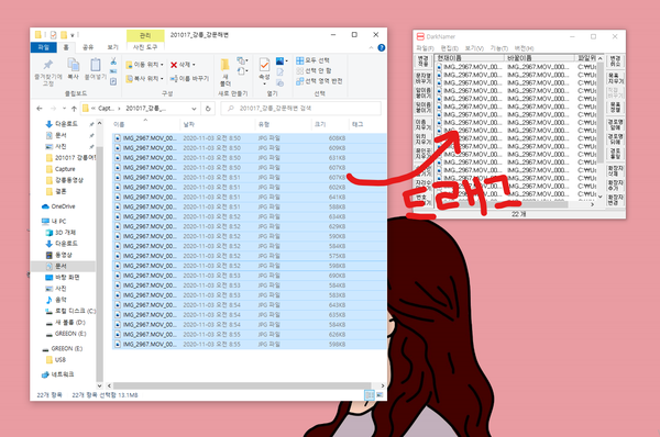 처음에 이름을 바꿀 파일을 드래그 해준다!