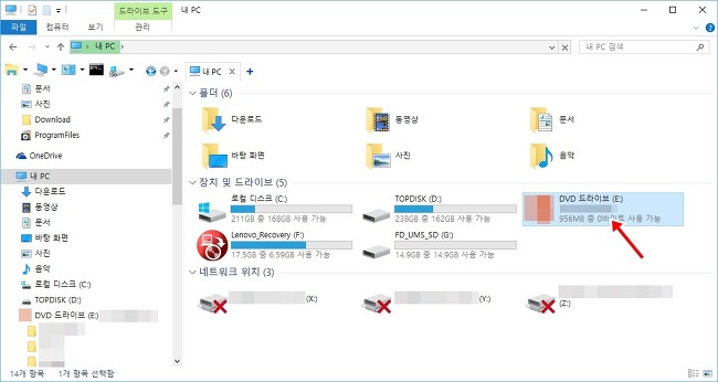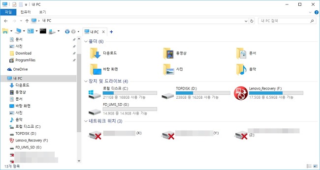 ▼ [꺼내기] 이후 [내 PC] 상에 드라이브가 삭제된 것을 확인 할수 있습니다.