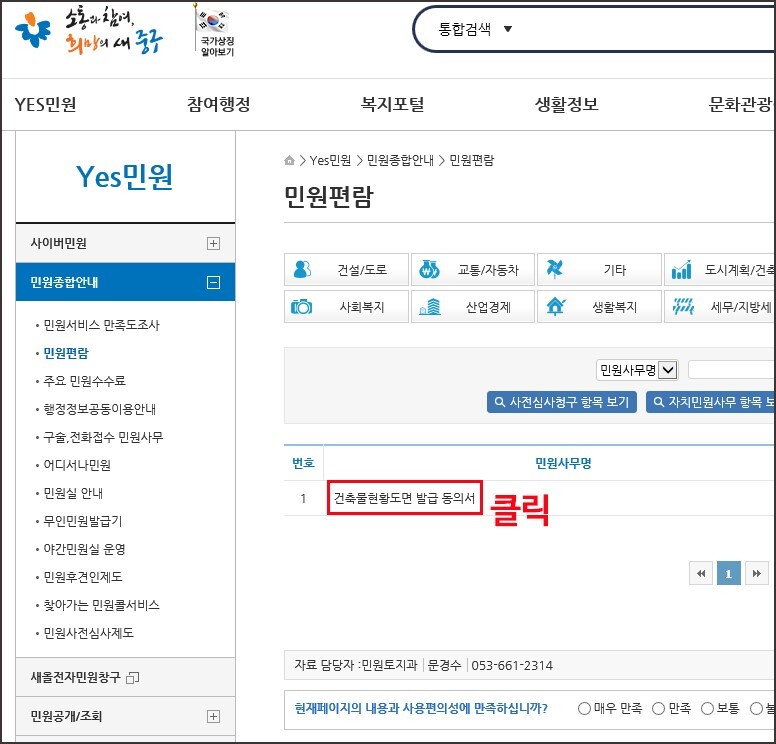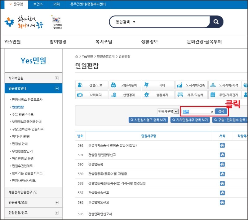 2. 민원편람 또는 민원신청 서식을 누르시면 됩니다.