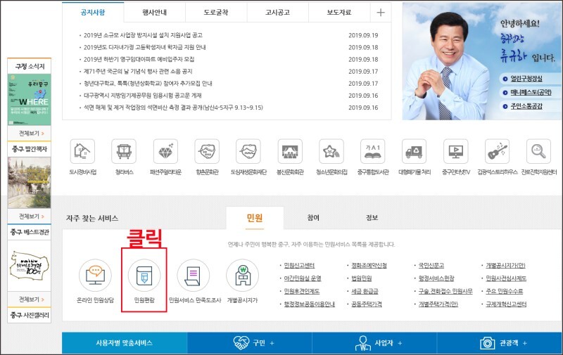 1. 물건지 관할 구청의 홈페이지에 접속합니다.