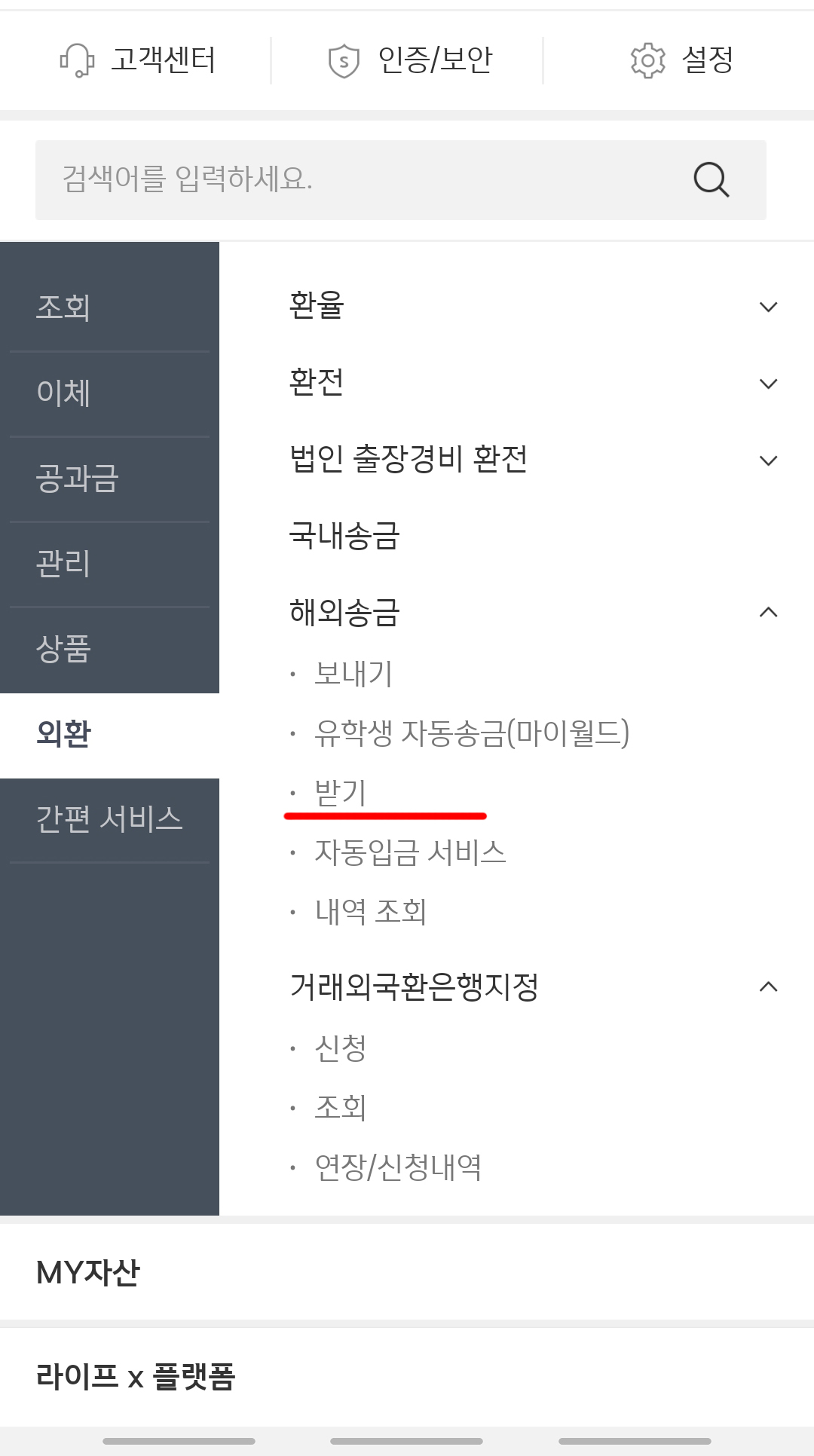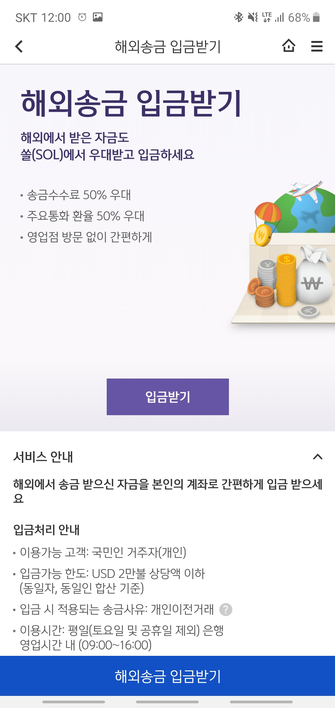 신한 쏠 어플에는 외환탭이 있는데요, 여기에 해외송금>받기 메뉴로 들어간다.