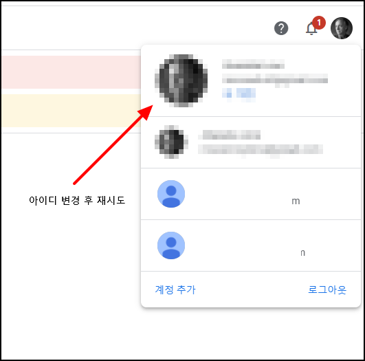 구글은 여러개의 구글아이디를 연계하여 애드센스 접근이 가능하다. 대표아이디로 접근하지 않아서 발생한 오류이다.