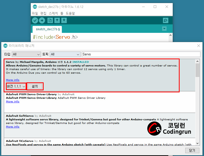 그럼 라이브러리 매니저가 나오고 원하는 라이브러리 파일을 검색해 주세요.
