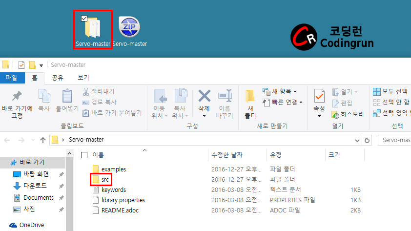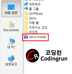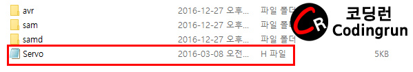 src파일로 진입해 보면 Servo.h라는 파일이 있네요!! 이 파일이 없어 에러가 났던겁니다!!