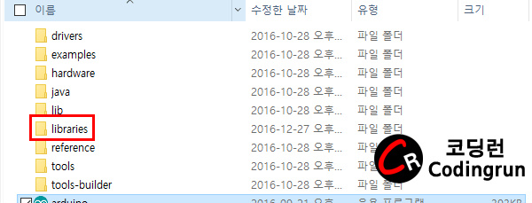 아까 압축풀었던 파일을 libraries폴더안에 넣어주세요!
