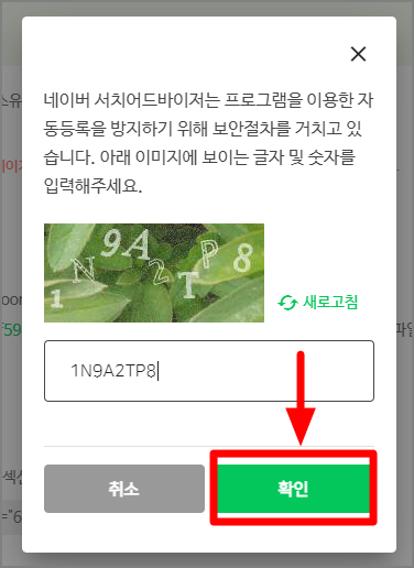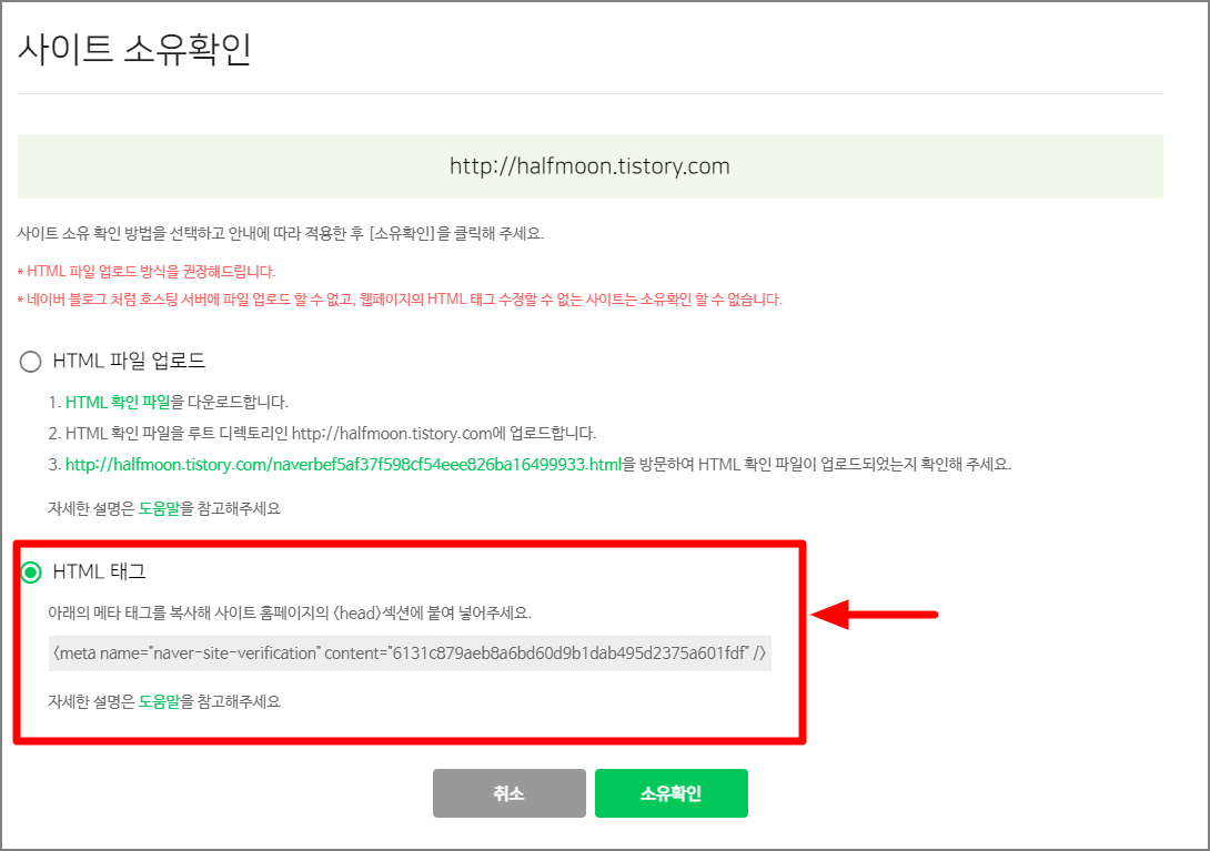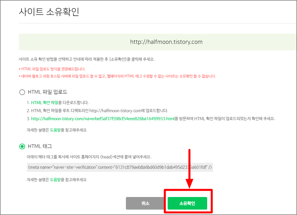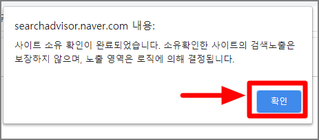 다시 네이버로 돌아와서 '소유 확인'을 클릭한다.