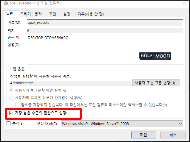 2. '가장 높은 수준 권한으로 실행' 클릭