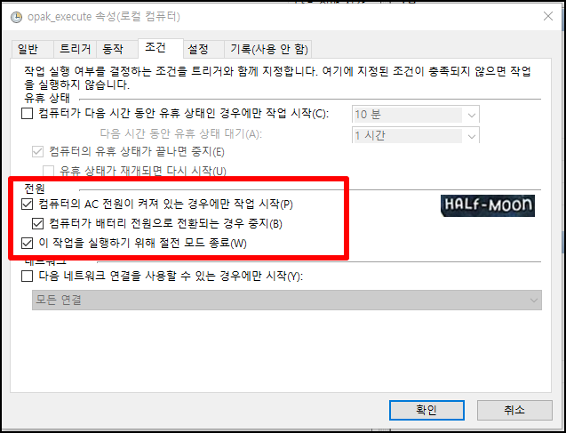 - 절전모드를 무시하고 실행하는 등 전원 옵션에 대한 내용이다. 3개 모두 선택한다.