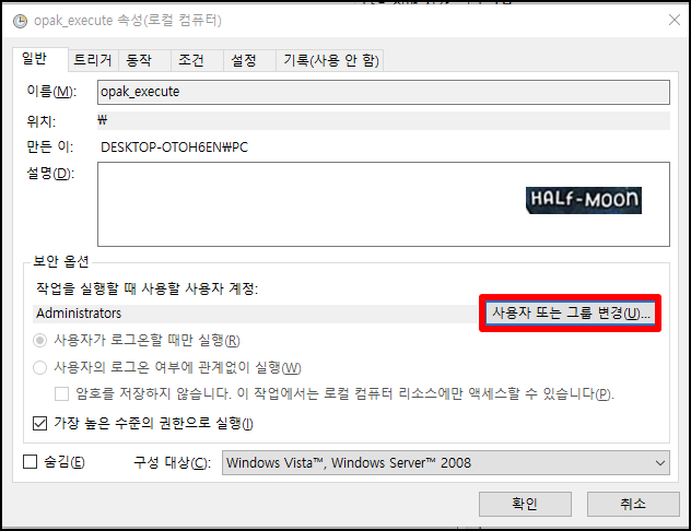 - '작업 스케줄러 운영자 또는 관리자가 요청을 거부했습니다'라는 오류가 나는 경우, 사용자 계정을 administrators로 변경하지 않아서 그렇다 (s 빼먹지않도록 주의)
