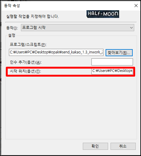 시작 위치(옵션)(T) : C:\Users\PC\Desktop\opak\send_kakao_1.3_inwork_220221_phonenumber_add