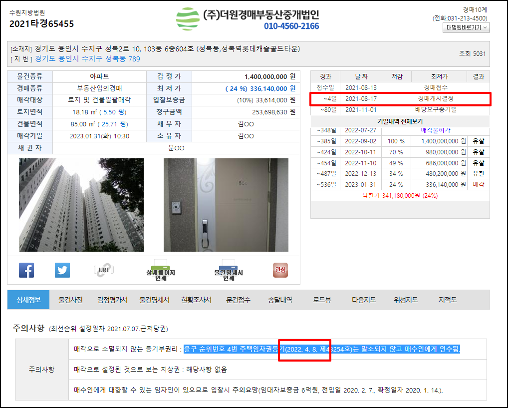 2021타경65455 :: 경매개시결정등기 이후 임차권등기를 설정한 경우