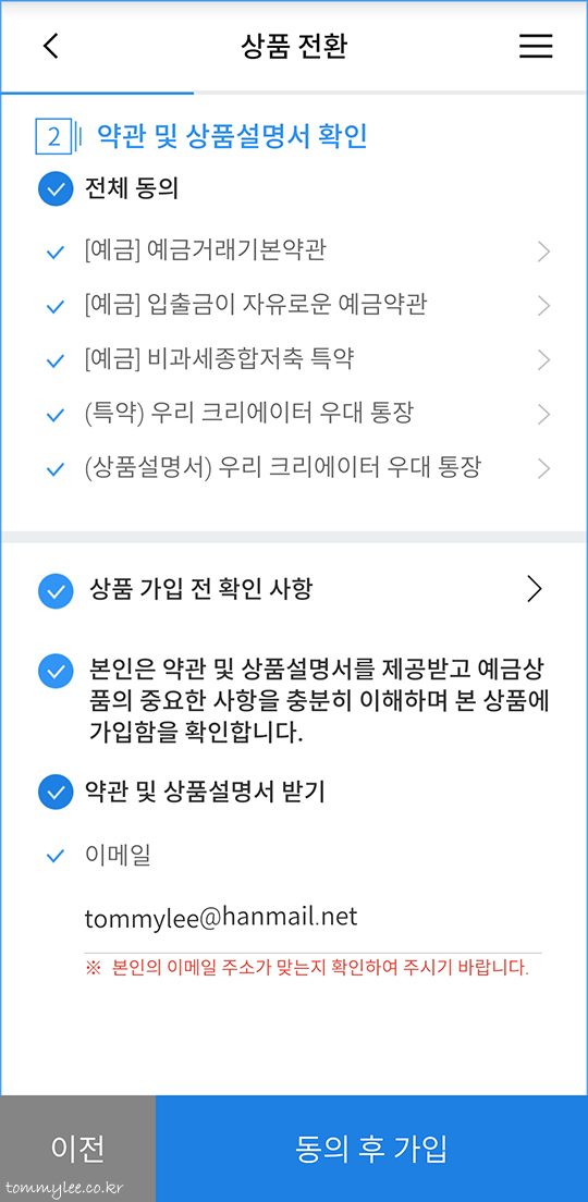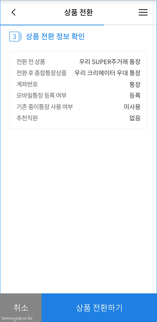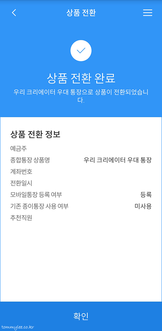우리 크리에이터 우대 통장으로 상품이 전환되었습니다.. 끝~.. 참 쉽죠??..