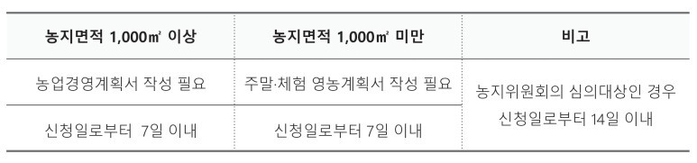 -> 농업경영계획서를 작성하는 경우 (신청일로부터 총 7일 이내)-개정