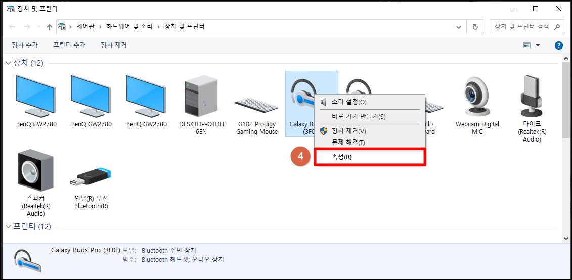 3) 버즈프로 마우스 오른쪽 - 속성 클릭