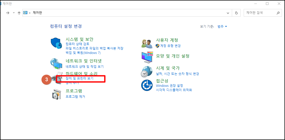 2) '장치 및 프린터 보기' 클릭