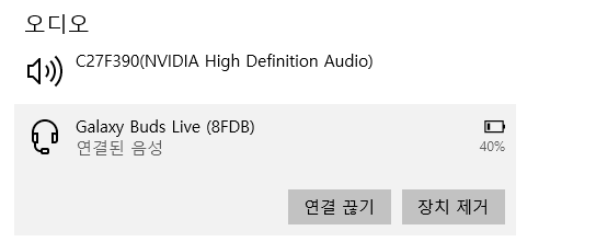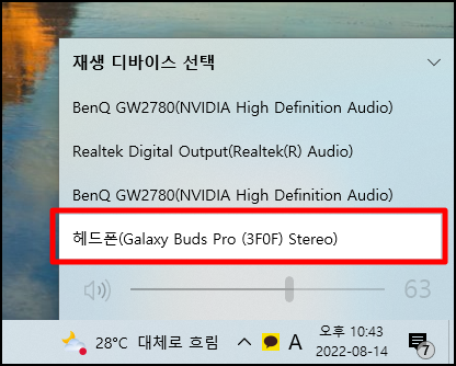 - 재생 디바이스를 헤드폰(Galaxy Buds Pro (3F0F) Stereo)으로 변경
