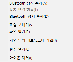 위의 작업표시줄에 동그라미 쳐진 블루투스 아이콘을 오른쪽 클릭한다.