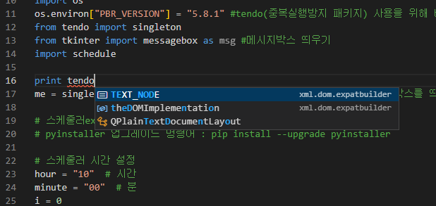 위와 같이 tendo 관련된 내용을 주석처리하고 .exe 파일을 컴파일한 후 실행했더니, 정상작동하였다. singleton 및 os 패키지 및 라이브러리를 잘 Import하게 만드는 것이 이 문제의 해결방법이다.