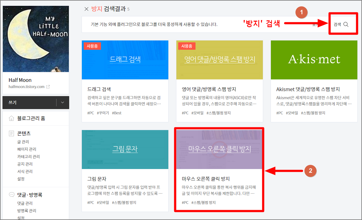 1) 블로그 관리 하단에 '플러그인' 클릭