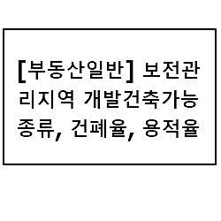[부동산일반] 보전관리지역 개발건축가능 종류, 건폐율, 용적율