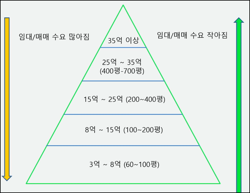- 60~100평대, 100~200평대가 가장 임대/매매가 활발하다.