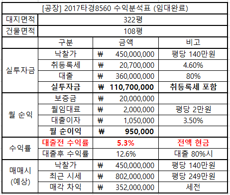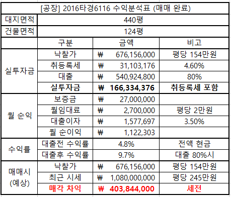 ※ 실제 낙찰된 공장 낙찰 예시 하나를 보여주고자 한다. (임대완료 1건, 매매완료 1건)