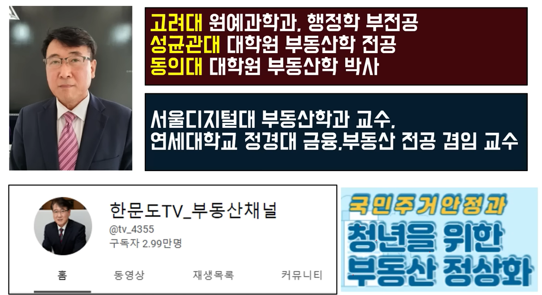 한문도 교수는 연세대 부동산학과 교수로 요즘 활발한 활동을 이어가고 있는 전문가이다.