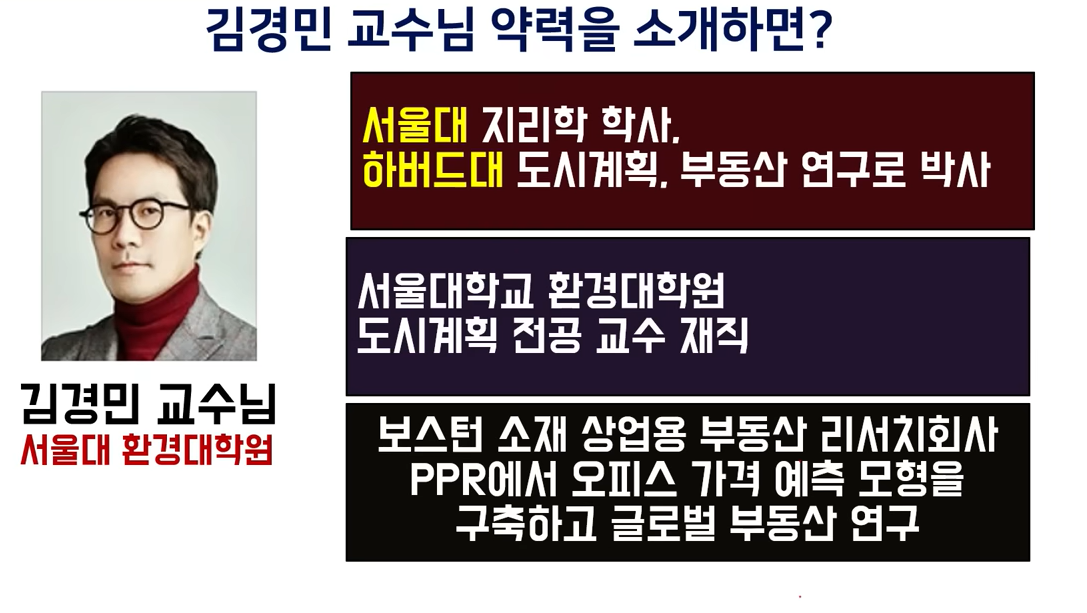 김경민 교수는 미국 상업용 부동산 모델을 한국에 들여와서 향후 집값을 전망하는 서울대 대학원 교수이다.