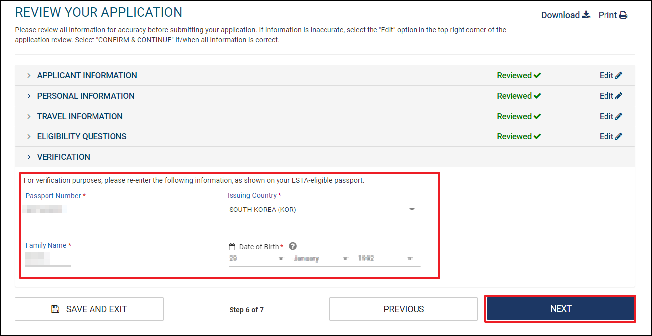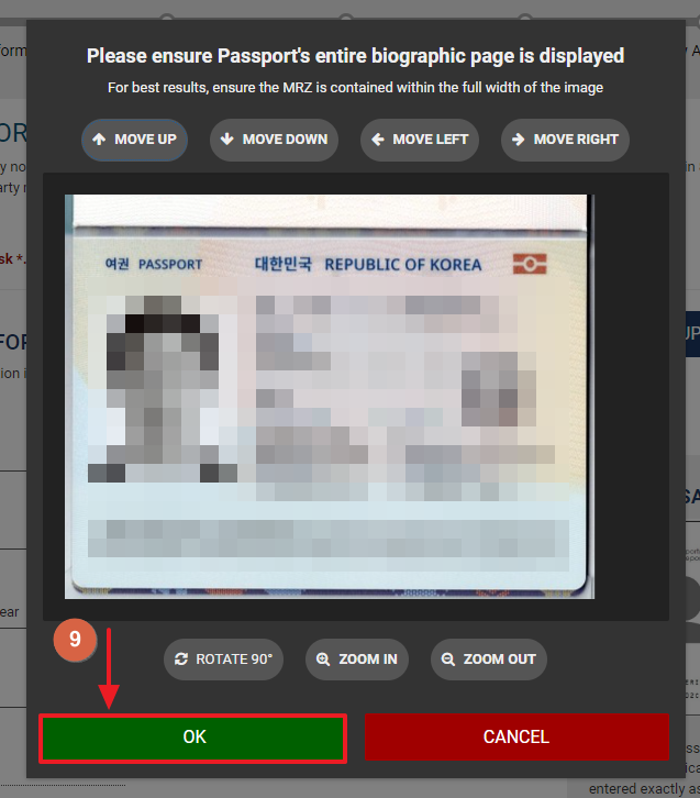 - 최종 확인을 위해 여권정보를 다시한번 확인한다.