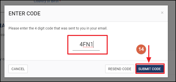 14. 4자리 코드 입력 - SUBMIT CODE 클릭