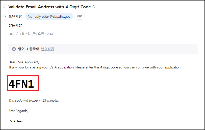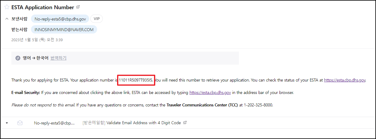 1) 신청완료시 신청완료 메일이 온다. 수신된 메일에는 신청번호(Application Number)가 동봉되어있다.