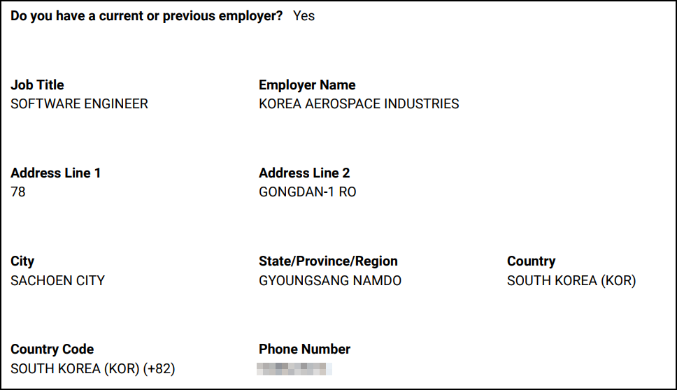 - Phone Number (직장 전화) : 핸드폰번호라고 직역되나.. 직장 연락처를 입력하면 된다.