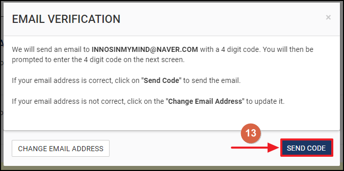 - 본인이 적은 이메일로 4자리의 CODE가 갈 것이다. SEND CODE 입력 후 메일을 확인하여 4자리 CODE를 입력하자.