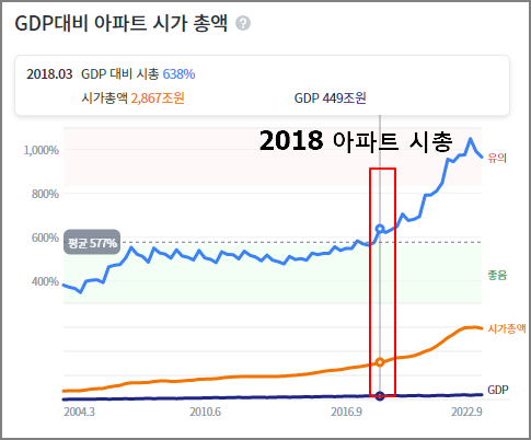 - 2018년도의 아파트 시가총액 (GDP 대비)